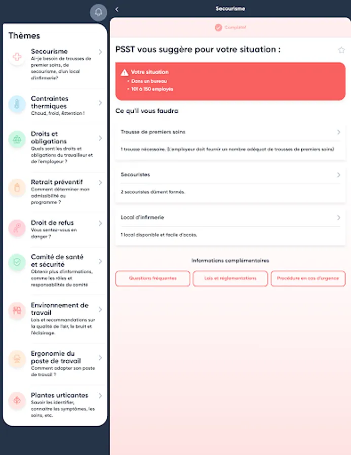 The application for preventive health and safety PSST allows some 1,800 local officials and members of the health committees and safety SFPQ to be better equipped to respond to questions from health and safety job. The application is in continuous development.