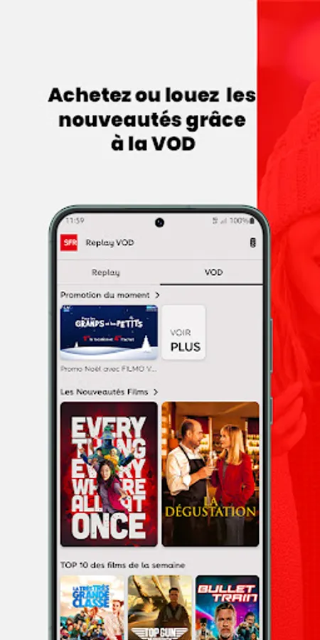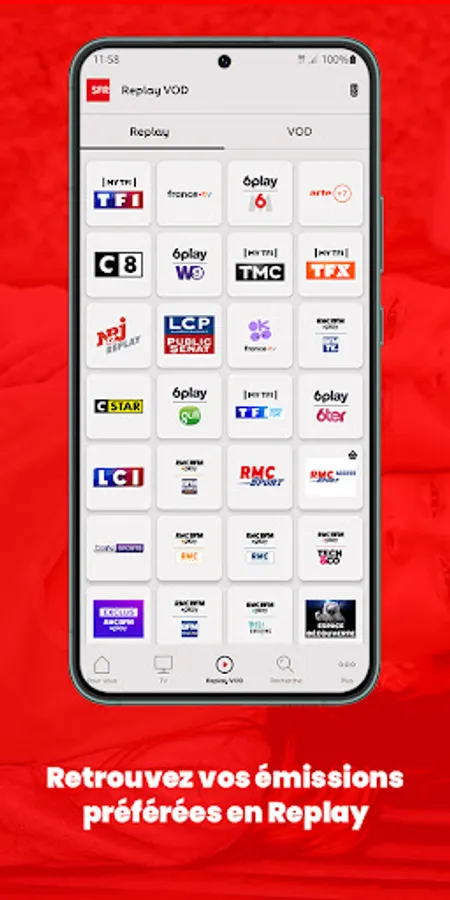 Find your favorite channels, their replays and a wide range of VOD thanks to SFR TV. It will also allow you to take advantage of your usual SFR services on your mobile and/or tablet.