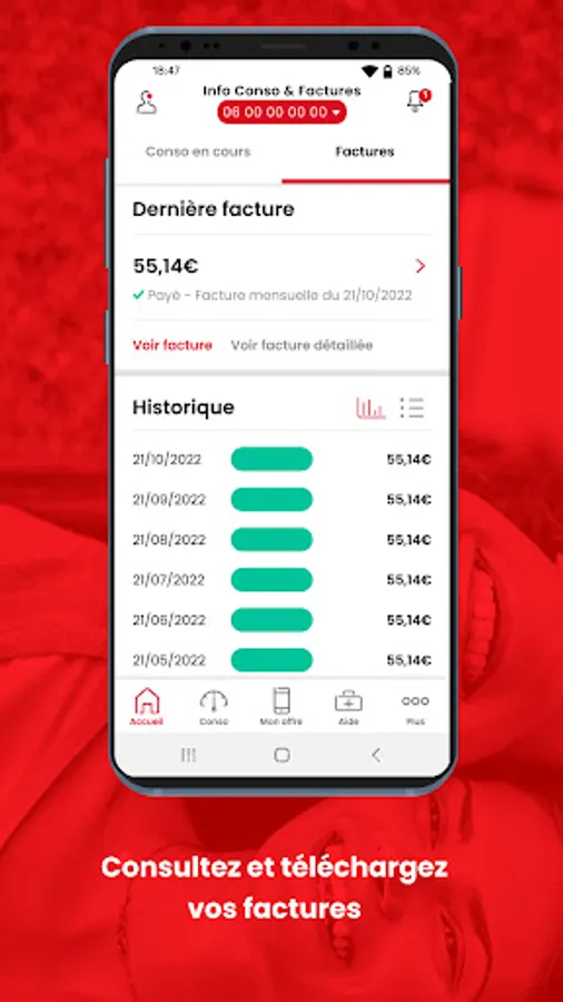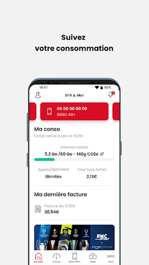 - Control your budget wherever you are, in France or abroad, thanks to detailed monitoring of your consumption for all your Mobile and Box SFR lines
