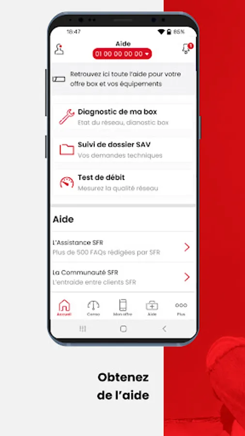 - Check the status of your box 24 hours a day thanks to the Line status feature and run a diagnosis of your box if necessary