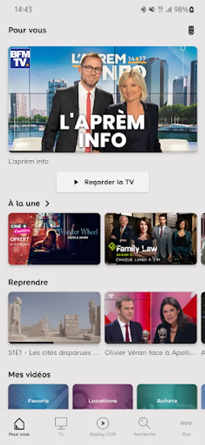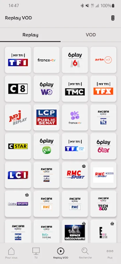 - REPLAY: Do not miss any program thanks to the replay of the channels.