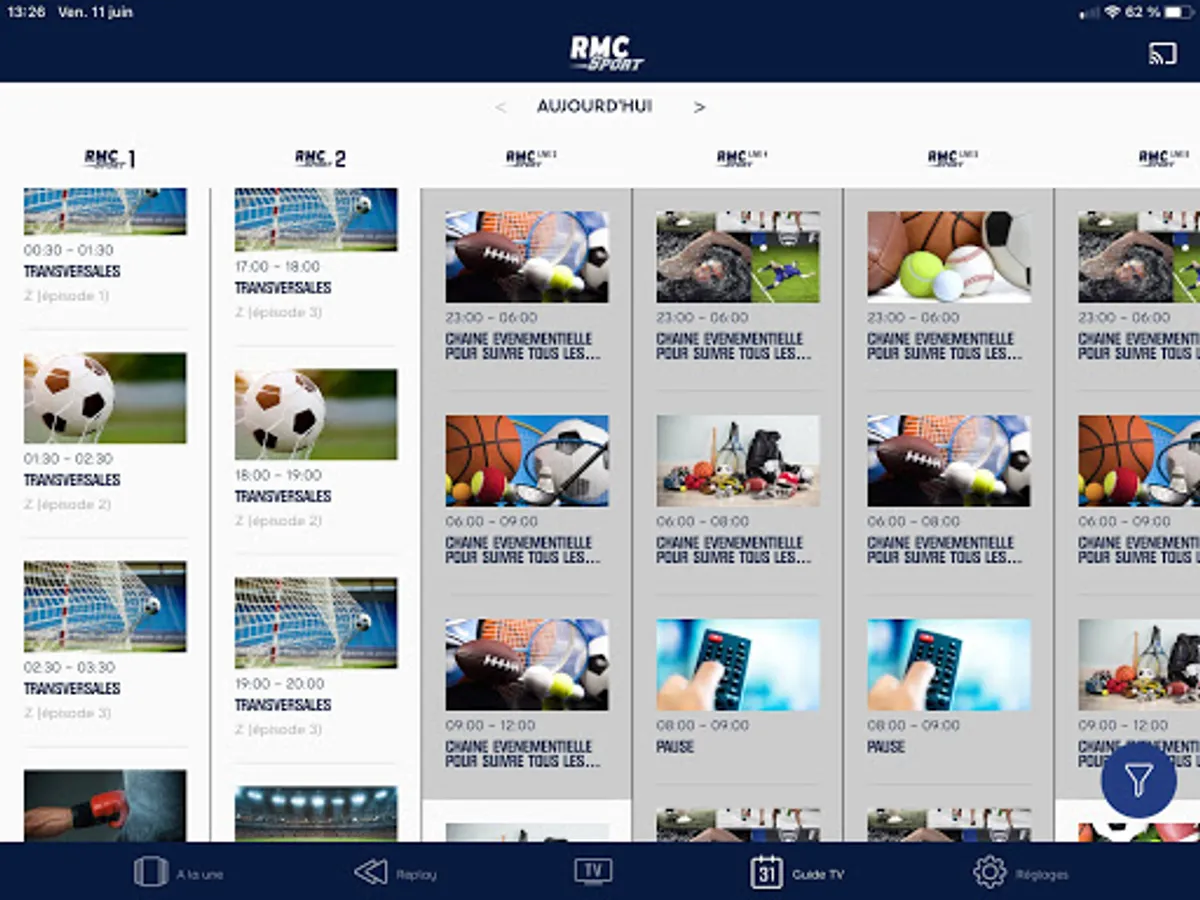 TV: Watch the RMC Sport channels live or resume a program from the beginning thanks to the restart. Missed a program? Thanks to the extended restart, watch it up to 8 hours after its broadcast.