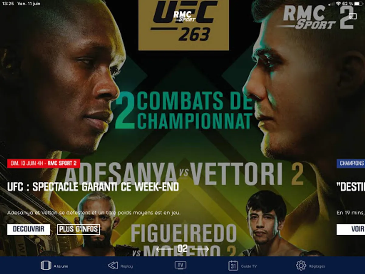 RMC Sport is also the reference channel for combat sports around prestigious MMA competitions such as the UFC, PFL and Bellator MMA as well as the essentials of boxing with Premier Boxing Champions. RMC Sport is also exclusive programs and reports.