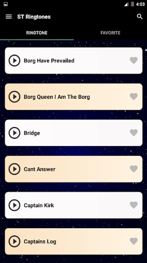This ringtones app includs sounds like : Theme song, Lcars sounds, Black Alert, Bridge, Communicator, Computer On,