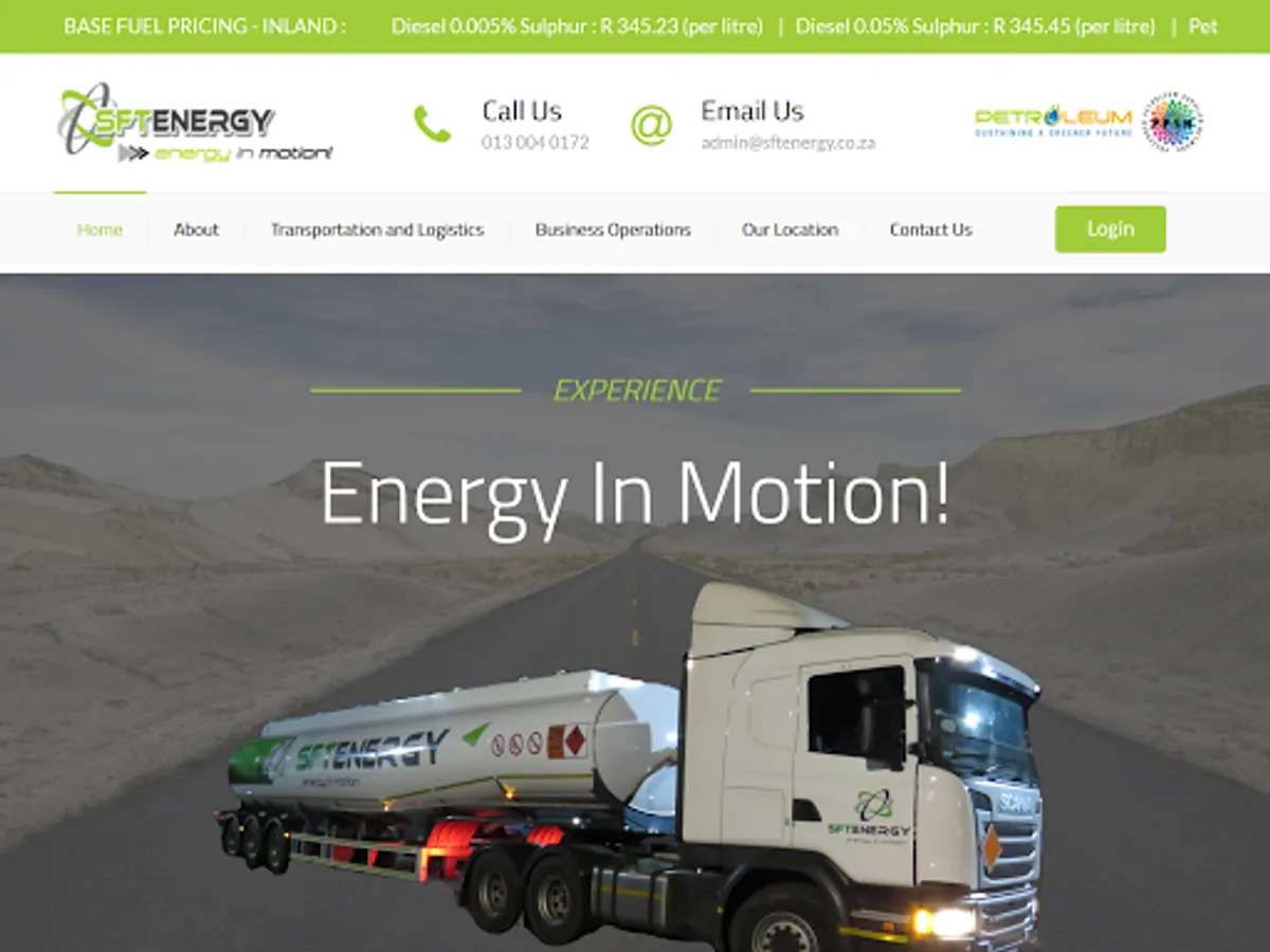We are a licenced wholesale petroleum company whom is focused on a credible customer base and a multi-faceted enterprise incorporating distribution and logistics. This bedrock on which the ethos of SFT Energy is built is based on the principle of Broad Based Black Economic Empowerment and complete customer satisfaction.