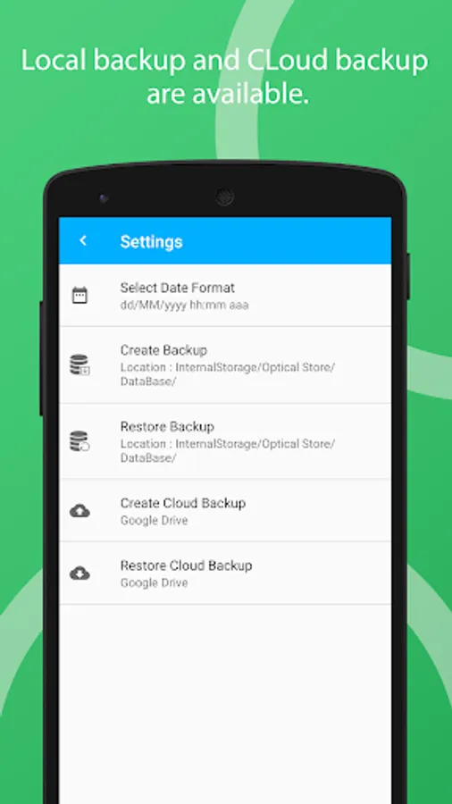 This app provides 100% data security as we are not storing your data on our server. The data is stored in your mobile internal storage, so your data is secured and on the other hand in cloud backup, your data is stored in Google drive which is also secure, because, without your Google login, data access is not possible.