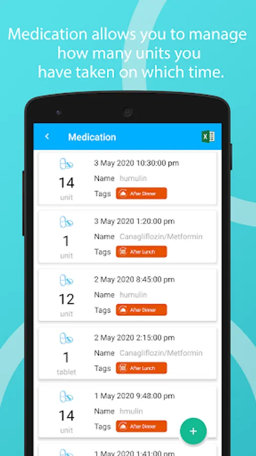 With the use of tags you are able to include additional information with each record for example before meals, after meals, etc, This app provides tag management system so you have to insert tag single time and then add it whenever needed.