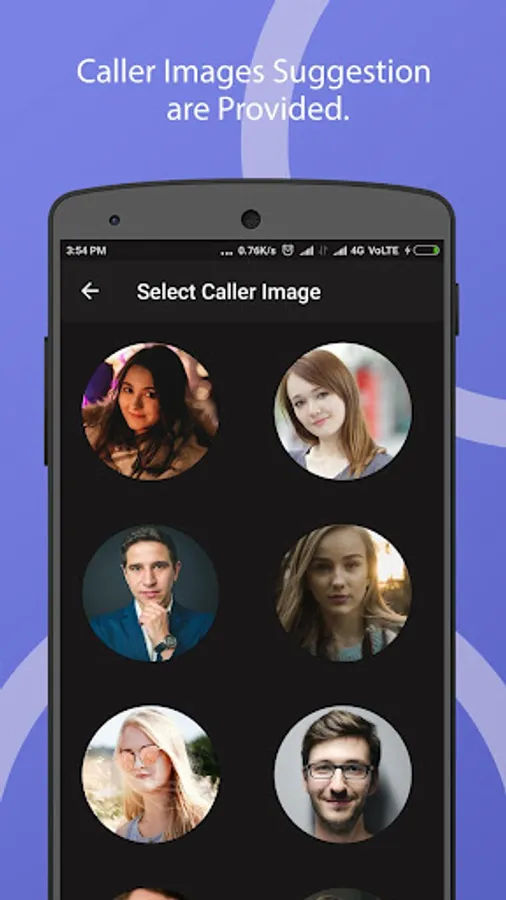 You can select a caller image form the contact list, gallery, and camera also, there are many predefined caller image suggestions provided for quick use.