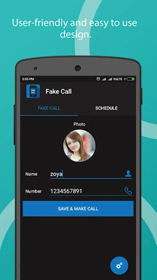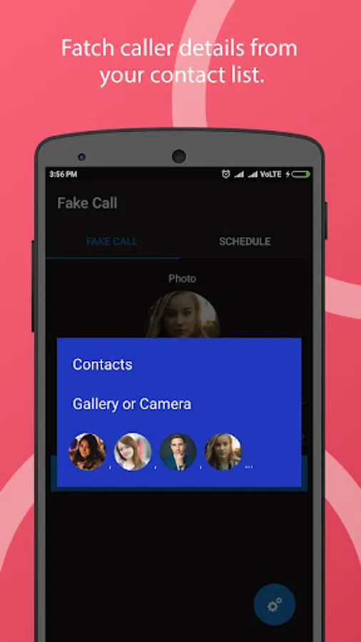 In this app, while making the fake call you have to set the image, name, and number but if you want to quickly use then You may select caller detail from your contact list so this feature makes your quick fake call.