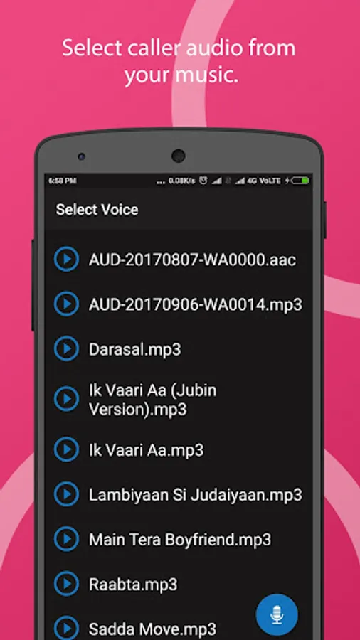 This app provides you to set the audio which plays while you receive a fake call, you select the audio from your internal storage or memory card, or else in this app recorder is also provided for quick use.