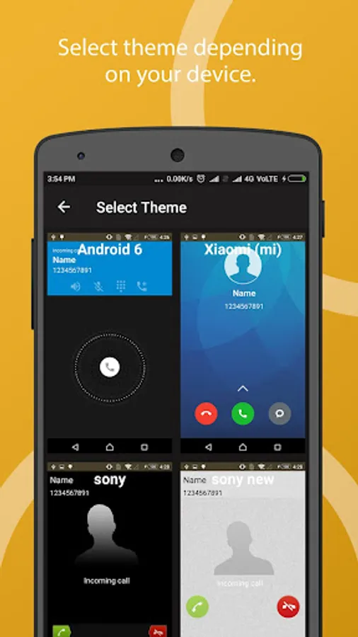 In this app, we are providing multiple calling screen themes so you can choose a theme as per your device. in this app Xiaomi(Mi) Theme, Android Default Theme, Sony old version theme, Sony new version theme, Samsung Theme, etc were provided