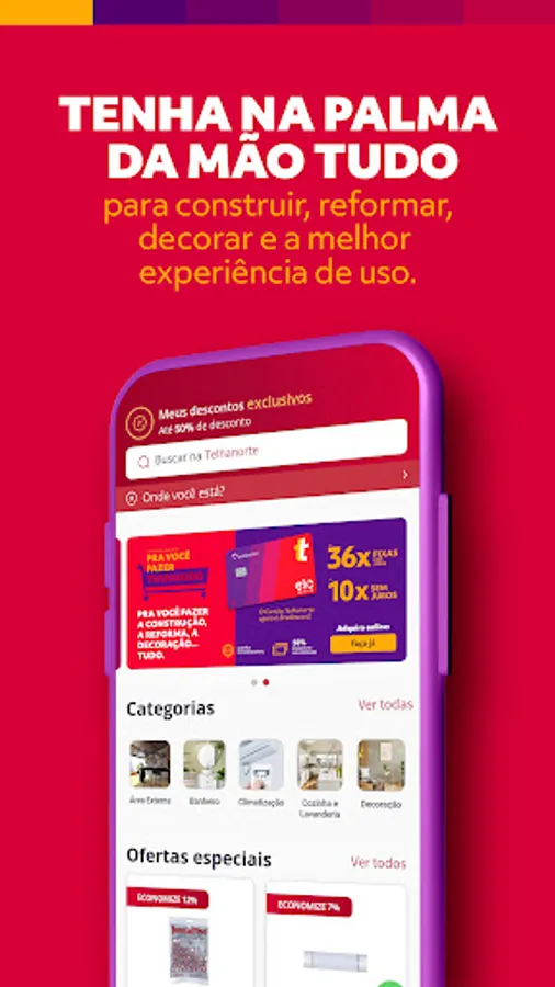 📱 No APP da Telhanorte você encontra diversas categorias e pode comprar todos os tipos de produtos em um só aplicativo:
