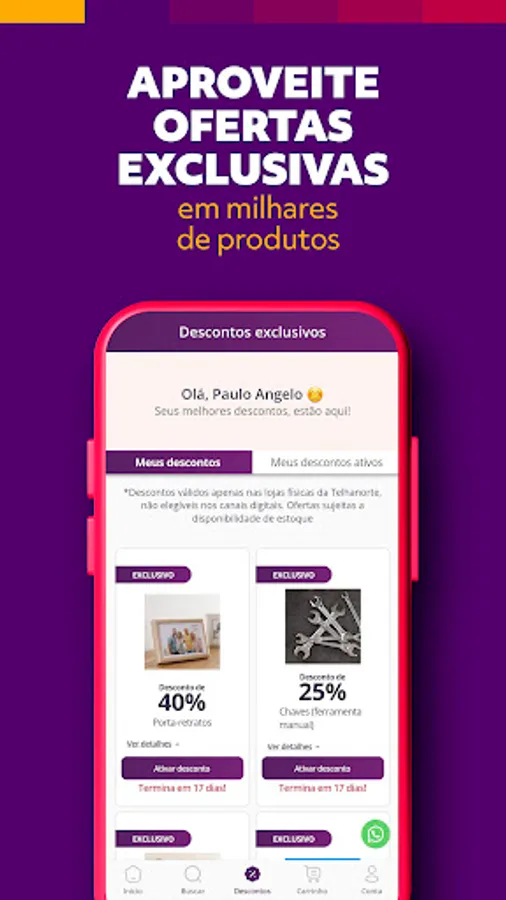 Aqui você encontra diversas categorias de produtos e ofertas exclusivas: área externa, banheiro, cozinha e lavanderia, decoração, elétrica, ferramentas, hidráulica, iluminação, materiais de construção, organização da casa, pisos e revestimentos, portas e janelas, tintas, ferragens, ferramentas, segurança e comunicação ou ar-condicionado. É só escolher! 📌