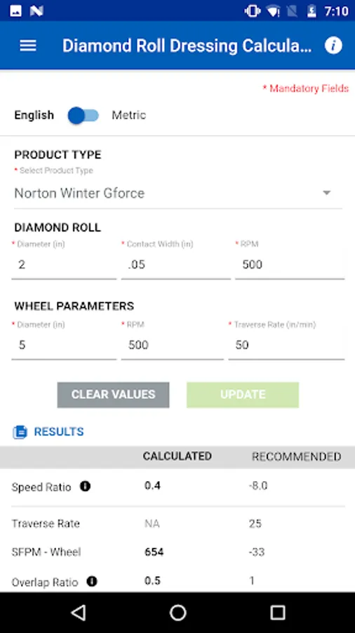 Support your grinding process with calculators and conversion tools created by Norton experts. With Norton iGrind you can calculate the starting parameters for traverse truing your grinding wheel, determine the ideal setup for delivering coolant to the grinding zone, or convert wheel speeds between RPM, SFPM (Surface Feet Per Minute), and M/Sec to ensure a safe grinding operation.