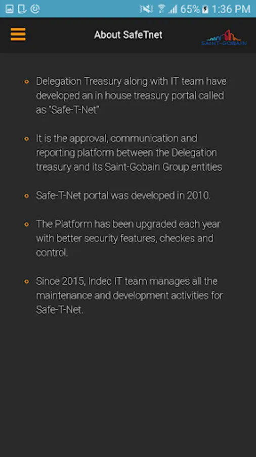 It is the approval, communication and reporting platform between the Delegation treasury and its Saint-Gobain Group entities.