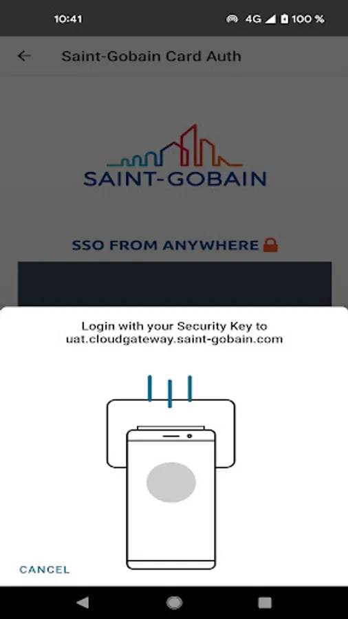 Saint-Gobain Card Auth is an application for Saint-Gobain employees to access application using Secure Card (NFC) authentication. Type your PIN code, scan your card with your phone NFC reader, that's it.