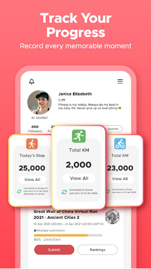 - Cumulative running challenges to build your fitness habits and lose weight and build muscles