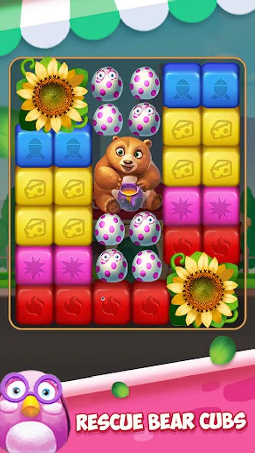 - Lots of amazing graphics in Fun Blast Game: flower, bear, owl, elephant, bee..