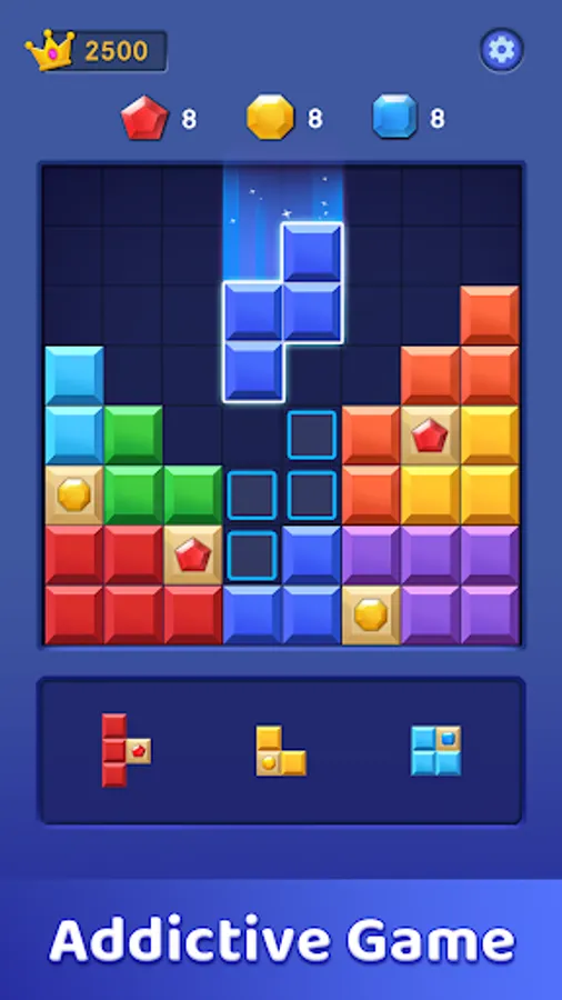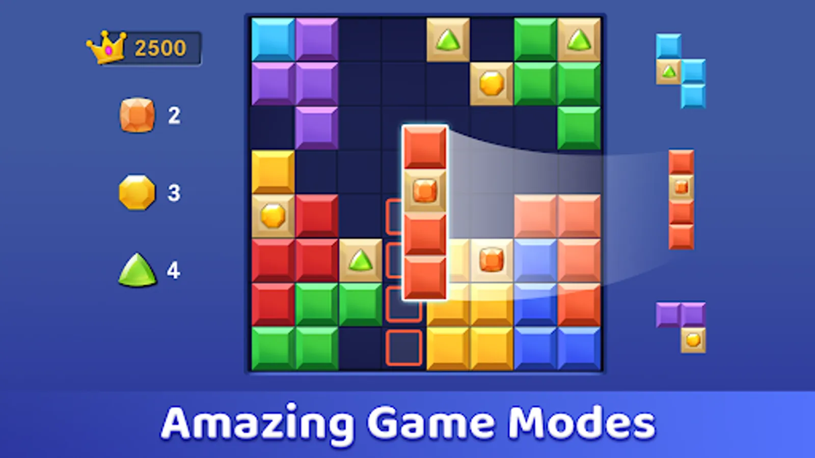 Especially in this block puzzle game, you can also experience of new and unique COMBO gameplay. Drag and drop blocks onto the board to fill a row or column and accomplish elimination. Bonus points and fantastic elimination animations are awarded when multiple rows or columns are cleared at once. You receive extra points for completing more COMBOs. Block Puzzle: Cubes Blast Gem will keep your brain sharp.