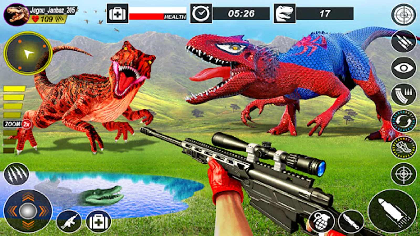 Enjoy shooting journey in jurassic jungle world animal hunting games as tough and tiring wild t-rex challenges of free survival dino zoo game and prevent animal attack as a jurassic hunter in best dino hunting games of carnivore hunting attack adventure on your mobile screen without being affected by severe weather conditions of wild dinosaurs hunting adventure. gun games provide all dino hunter animal hunting games of clash animal hunting games on dinosaur hunter survival games in deadly dinosaur hunting game as fps shooting master which gives you opportunity to encounter deadly dinosaur hunting game of dinosaur deadly shores of wild deer hunting clash of dinosaur hunting adventure of wild dino hunting experience and giving you chance to become pro dinosaur hunter in this wild dinosaur gun game.