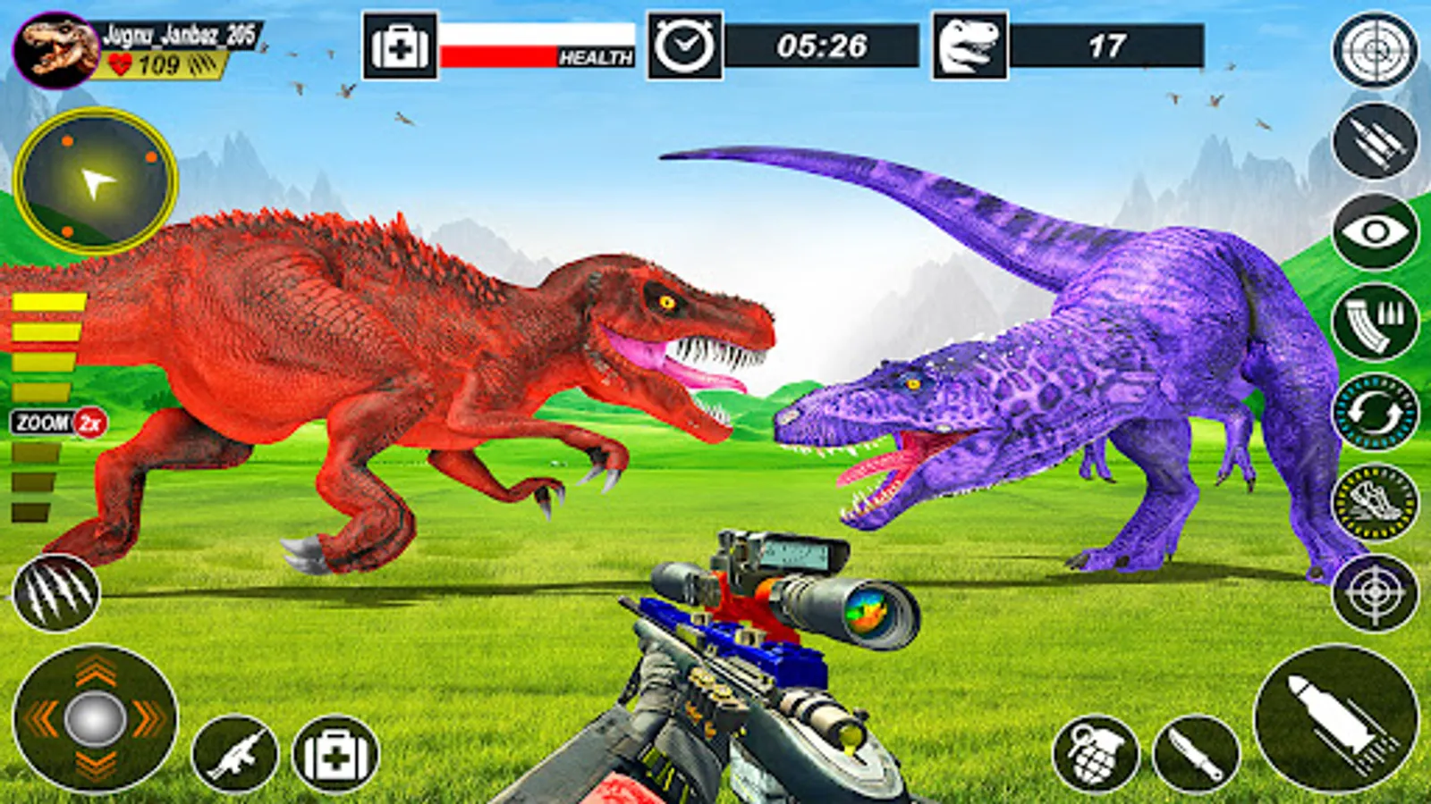 Animal zoo game introducing modern animal hunting trends and traditions to make the lovers of dino hunting games aware with all prevailing animal hunting approaches. Make a long tour of this dino hunting world of hunting games and turn into professionally trained and real wild dino hunter in short time frame. Explore jurassic world of jungle hunt deer games by assuming the special role of forest fps hunter who has strong desire to write his name in dino hunting legends of animal games.