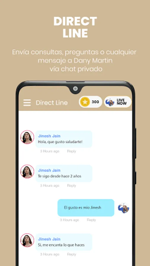 - Direct Line: direct text messages with Dany downloading her Official APP.
