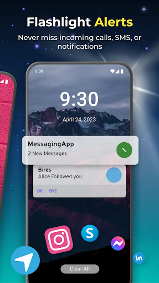 👉 Enjoy the innovative and customizable interface of flash notifications.