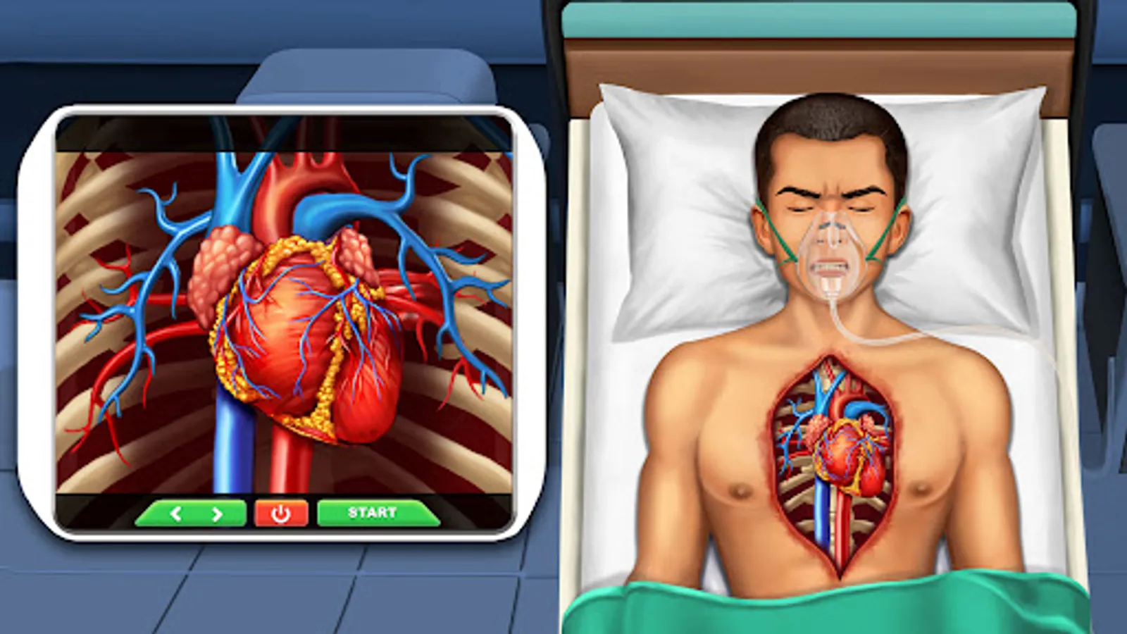 Before open heart surgery, perform pulse rate test in care clinic dr games. Prepare the er doctor's room in hospital games with medical injections and surgical instruments. Be careful while performing heart surgery in doctor simulator surgeon games in health care medical games. In hospital games, don’t let heart patients go into a frozen state and tackle such emergency situations like a rescue hero of a hospital simulator. During heart surgery in doctor games, you have to replace the heart. Use BP checking device in one of the hospital games. Operate now as an expert heart surgeon, mark and cut for surgery in heart doctor games. Don’t damage the stomach and lungs in fun doctor games. Expose heart & clogged veins; if the heart is damaged, replace the heart after surgery.