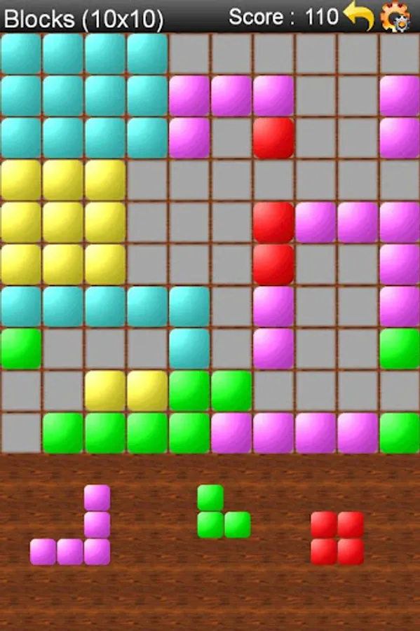 Place the different blocks shapes on the 10x10 grid board. Fill up complete rows or columns to clear the line(s). Gain points by placing each blocks on the grid. Earn bonus points by removing more hen 1 line at a time. Use undo to re-position the block.