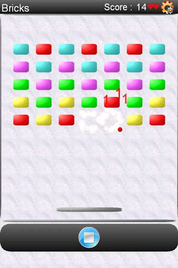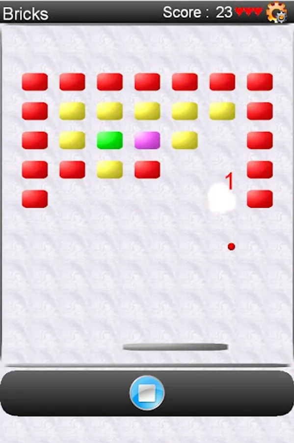 Tilt the phone to control the paddle to prevent the ball from falling off the screen. Clear the screen of the bricks to earn high score and advance to the next level. Use menu to restart the game and check the score.