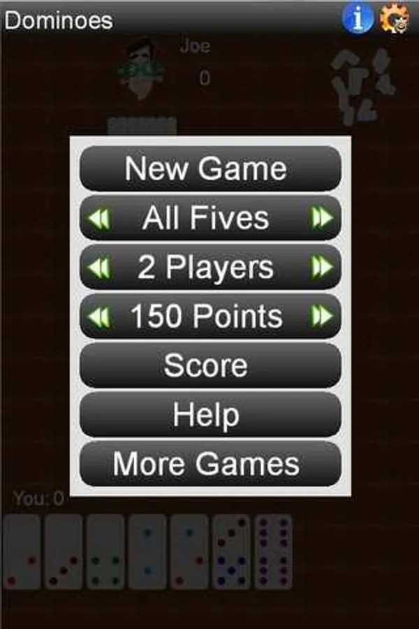 The game begins by shuffling the dominoes and dealing a hand to each player. With two players, each one starts with 7 dominoes, with more players, each one starts with 5 dominoes. The player with the lowest double in their hand makes the first move.