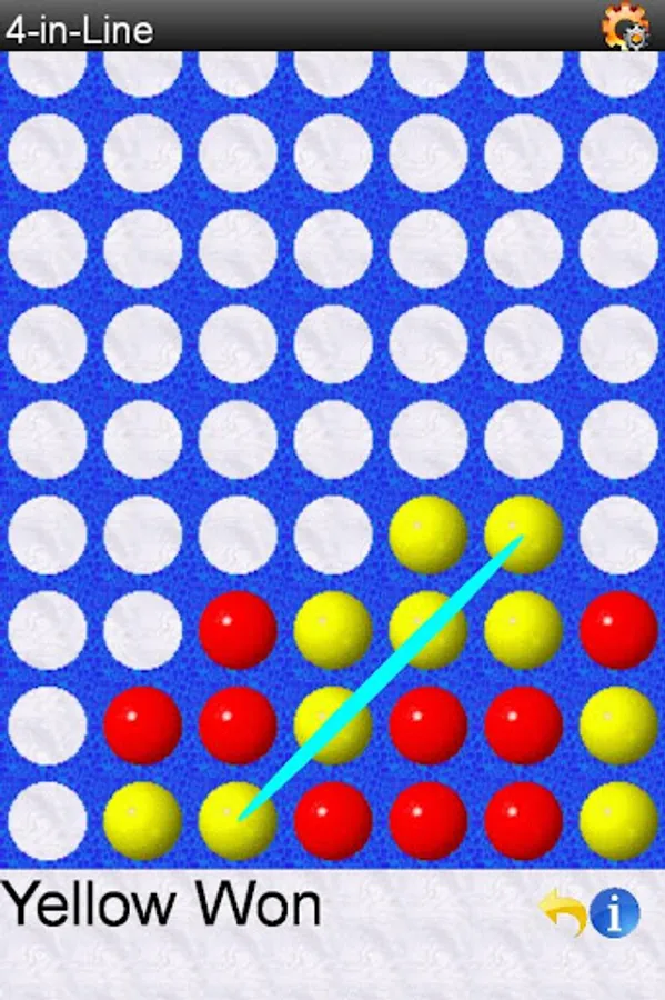 As any successful game, 4-in-Line has been ported to numerous platforms. So why should you give our version a try? We largely tried to recreate a full experience of the game in a tiny package, including powerful AI engine with 3 different difficult levels, ability to play against other person or the phone, undo and hints