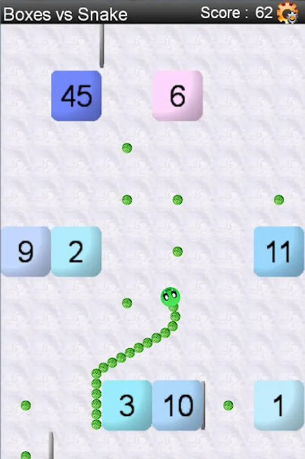 Tap to move the snake left/right. Avoid the boxes and collect balls to feed the snake.