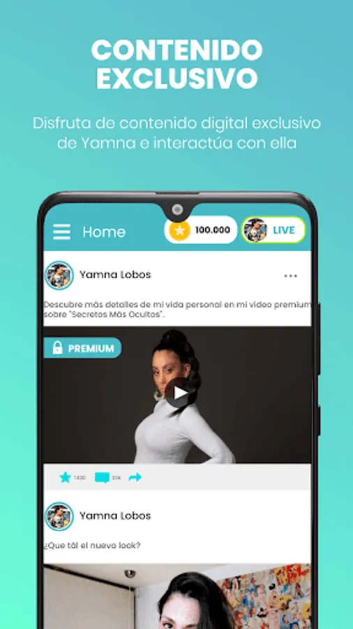 By downloading her App you will be able to be in contact with her, have access to exclusive content and even be able to interact through different channels in a personalized way.