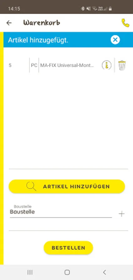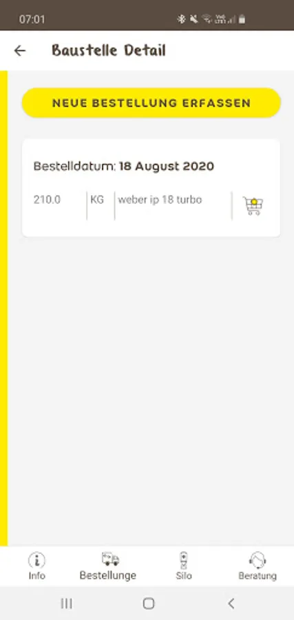 - Order history: You can keep track of which products and quantities have been ordered to which construction site at any time. You can also see the orders from your work colleagues and thus avoid duplication!