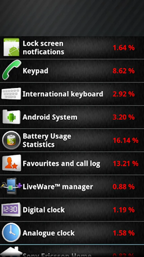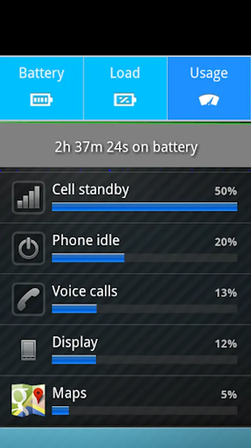 2. Battery's current load used by all the apps installed in your mobile phone(% value).