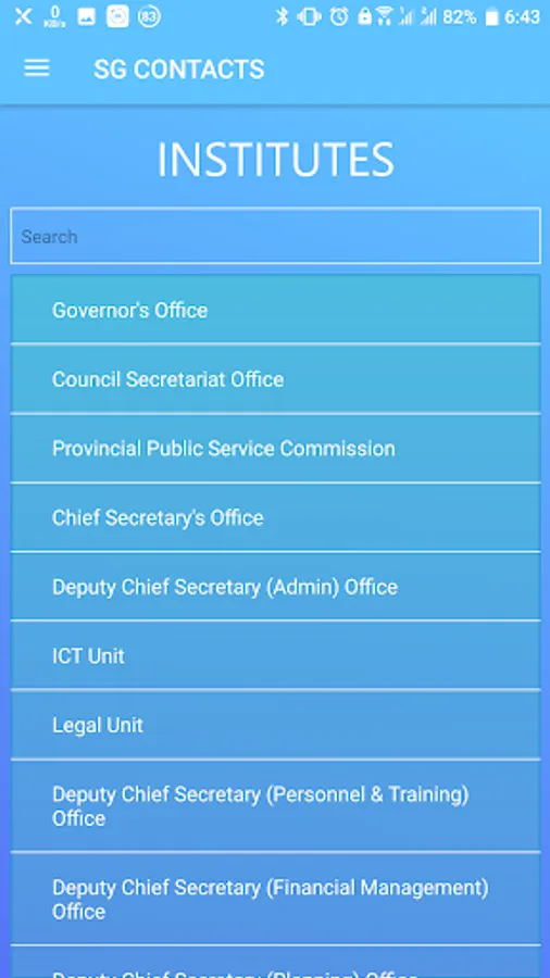 This App contain the Official Contacts Details of Sabaragamuwa Provincial Council Institutes & their staff officers. Which include official telephone numbers & officers telephone numbers (Mobile Phone) also this app contains the Institutes e- mail address, Fax numbers & Web addresses.