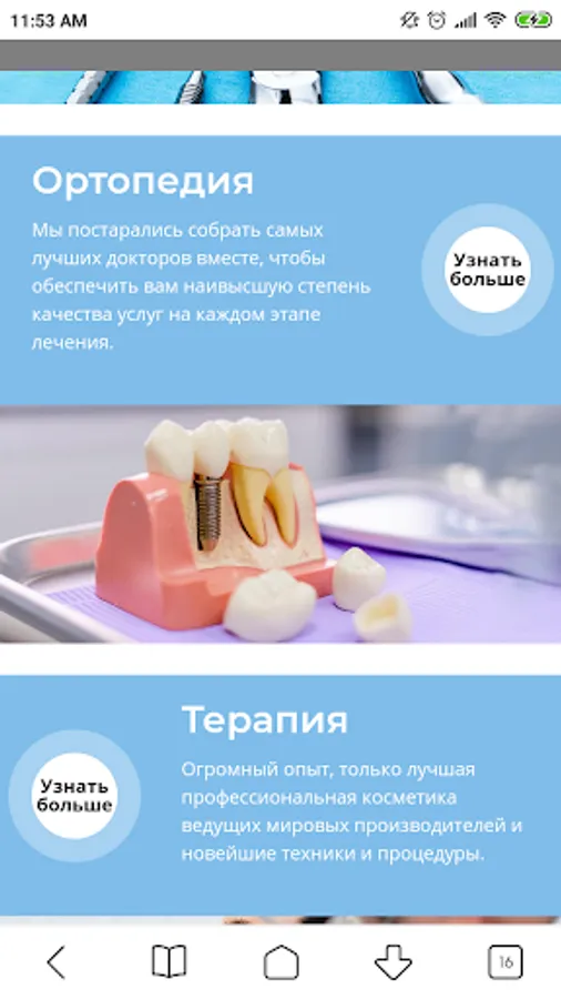 Our dental clinic successfully implements advanced global techniques in order to improve the quality of services for our patients every day. Turning to us, you will be convinced that a visit to the dentist is not always painful feelings and negative emotions. The modern achievements of medicine that we use in our work allow us to solve even the most complex problems without discomfort for the patient.