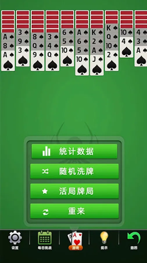 1. Use a common deck of 52 cards, arranged in 10 columns, with 1-7 cards in each column. Only the bottom card is visible face up, all other cards are face down. The K card can only be moved to the empty column below, and the order must be from big to small, that is, K to A. If there are already other cards in the lower column, the new card can only be placed on top of the stack.