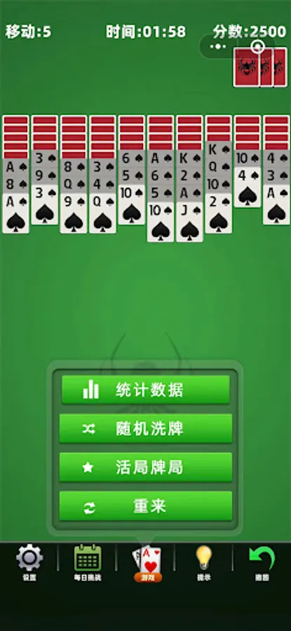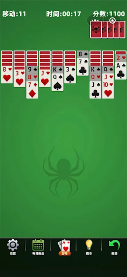 Spider Solitaire classic software is a classic game combining card games and puzzle games. The gameplay is simple, but it is also full of challenges and can bring unlimited fun. Eliminate all stacks of cards on the table using the fewest moves. By dragging and exchanging the cards between different decks, all the cards are arranged in order from small to large by suit. When the last set of cards is also placed in order, the game is won.