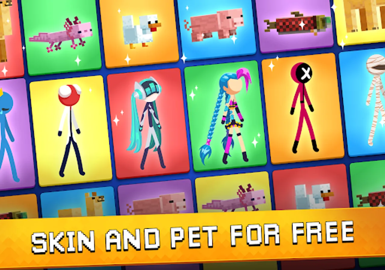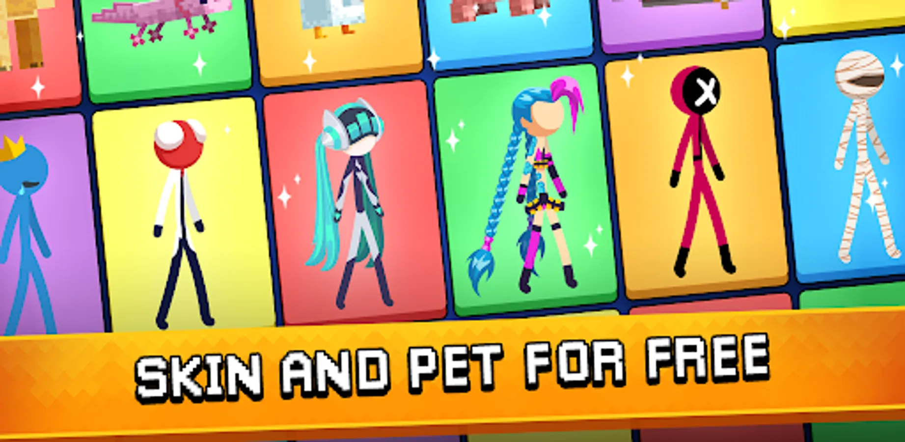 - Skin: Stickman with famous character skins such as: Iron, Spider, Capman, Hamer, Wanda ... or 11 characters inspired by the movie guardians of the galaxyy (Star-Lord, Groot...)