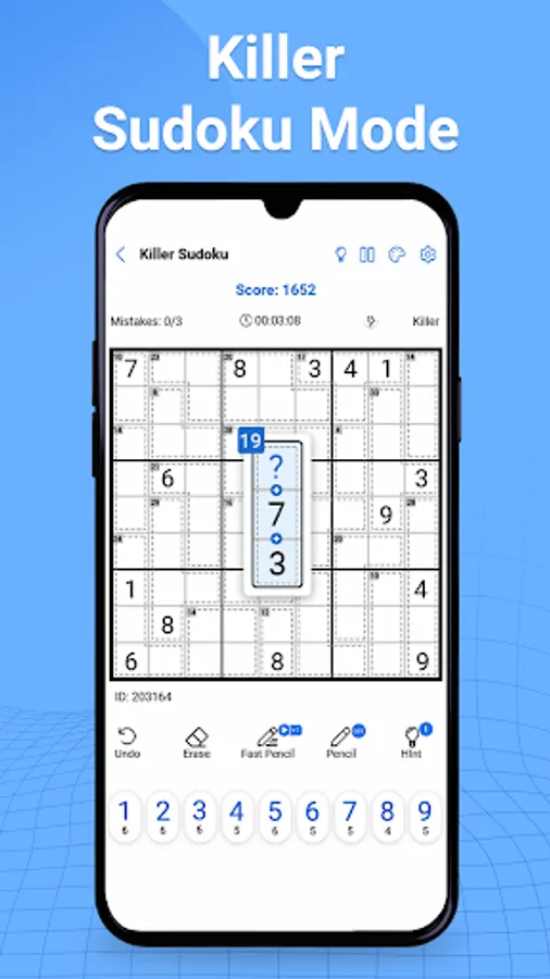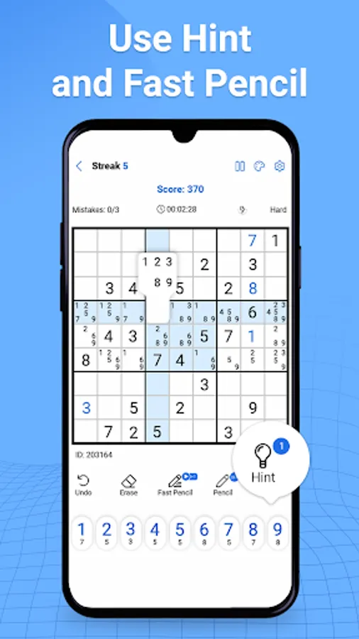 - Help feature: Undo, Erase, Pencil, Fast Pencil, and Hint.