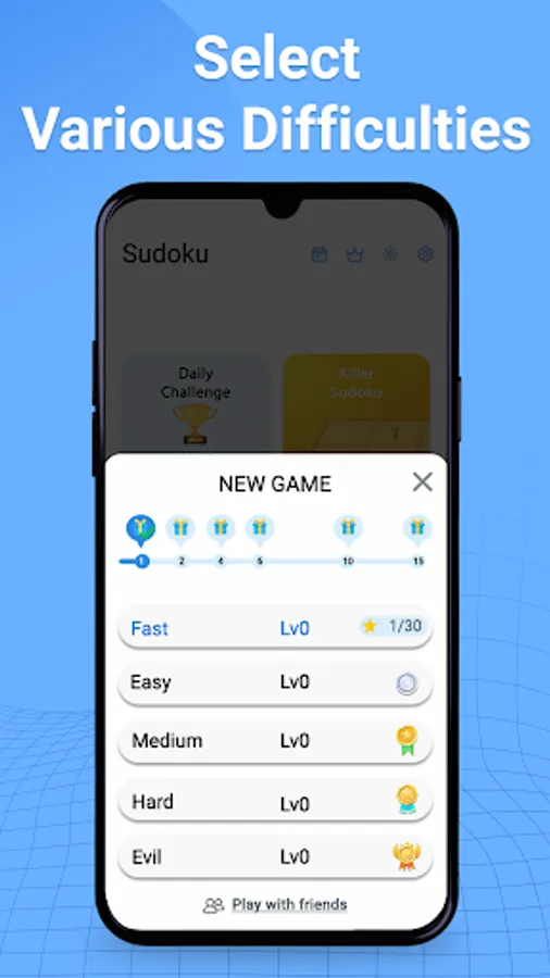 - Classic Sudoku Classic has 4 difficulty levels: Easy, Medium, Hard, and Evil.