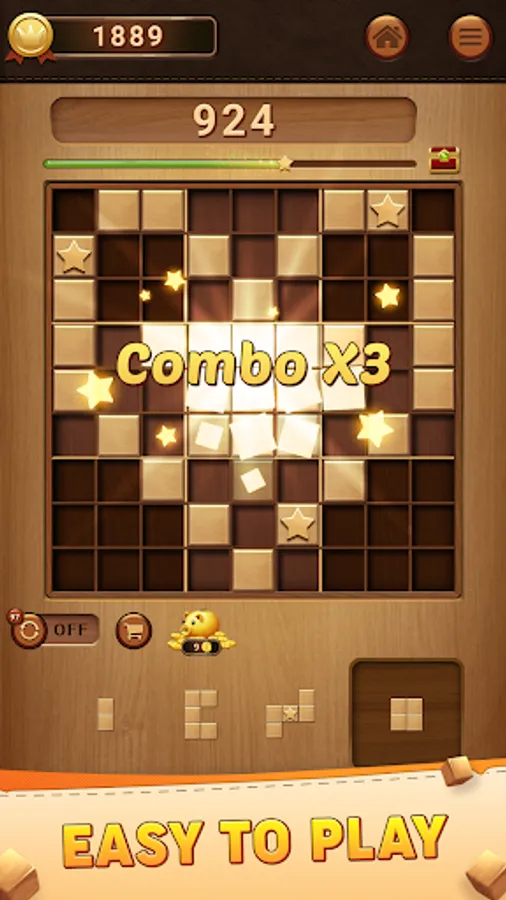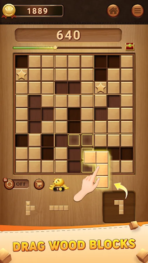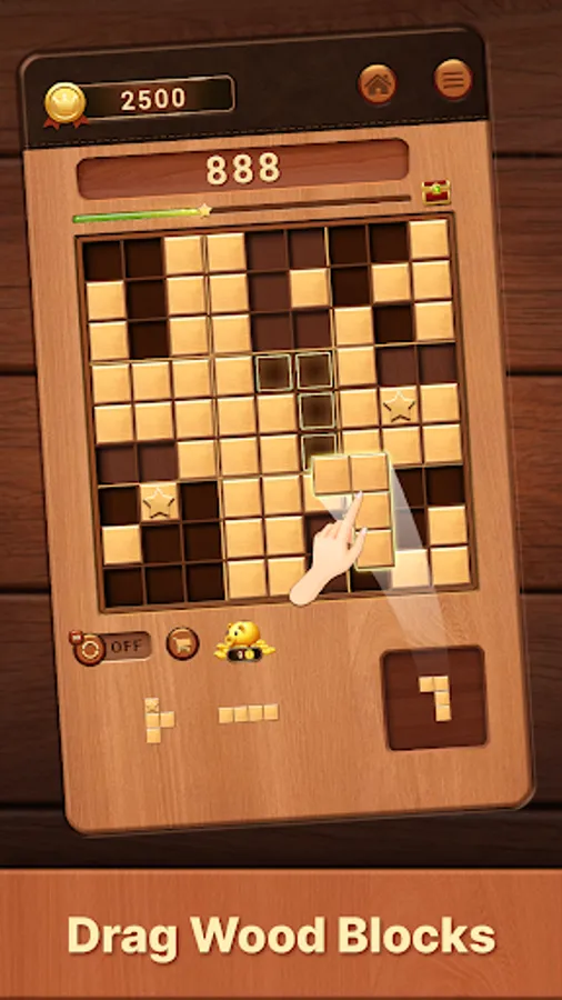 - Drag wood blocks onto the 9x9 wooden sudoku grid.