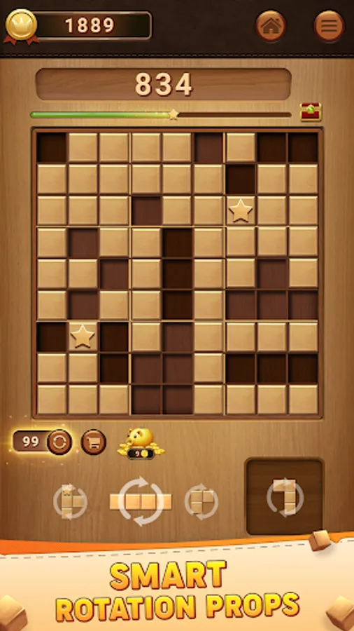 Place the wood blocks into the 9x9 wood sudoku board & fill rows, columns, or squares to clear blocks from the board. A few minutes per day, easily to improve your brain power. Play the wood block puzzle for as long as you can without running out of space to beat your high score. With Woody style, this game will reduce stress and make you relax every time you play. This game seems very simple, but it is quite challenging. More wood blocks are eliminated, more scores you get. When you get stuck, you can use smart rotation props to solve it.