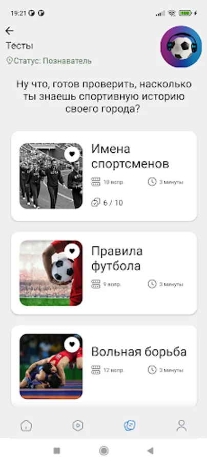 - Tests and photo quizzes about sights and athletes