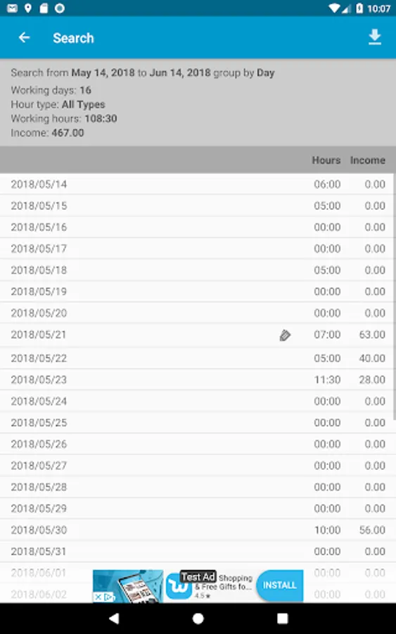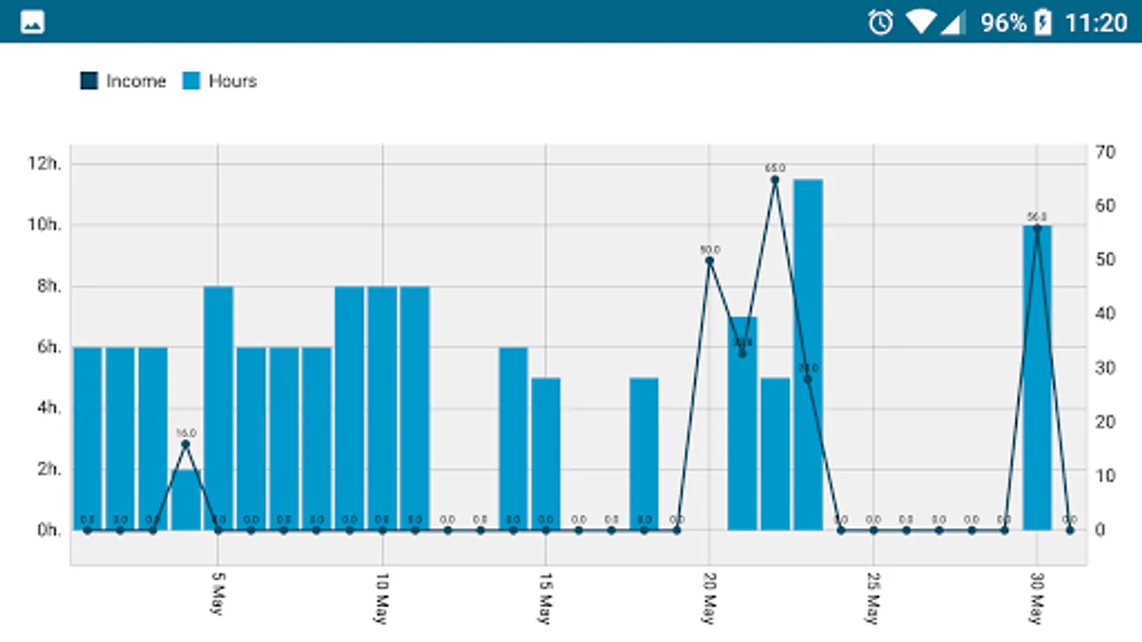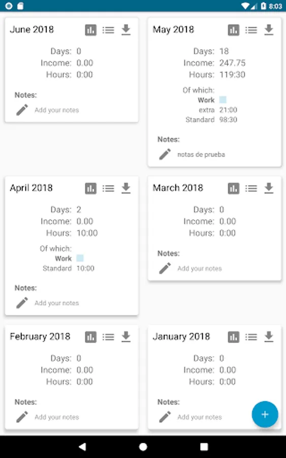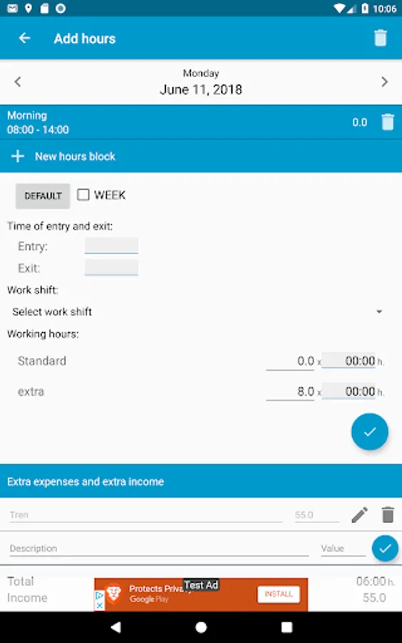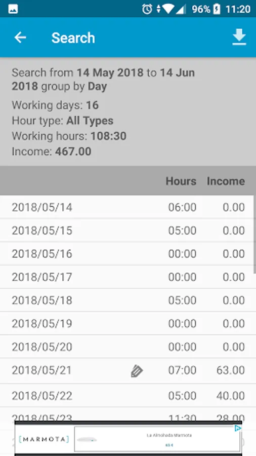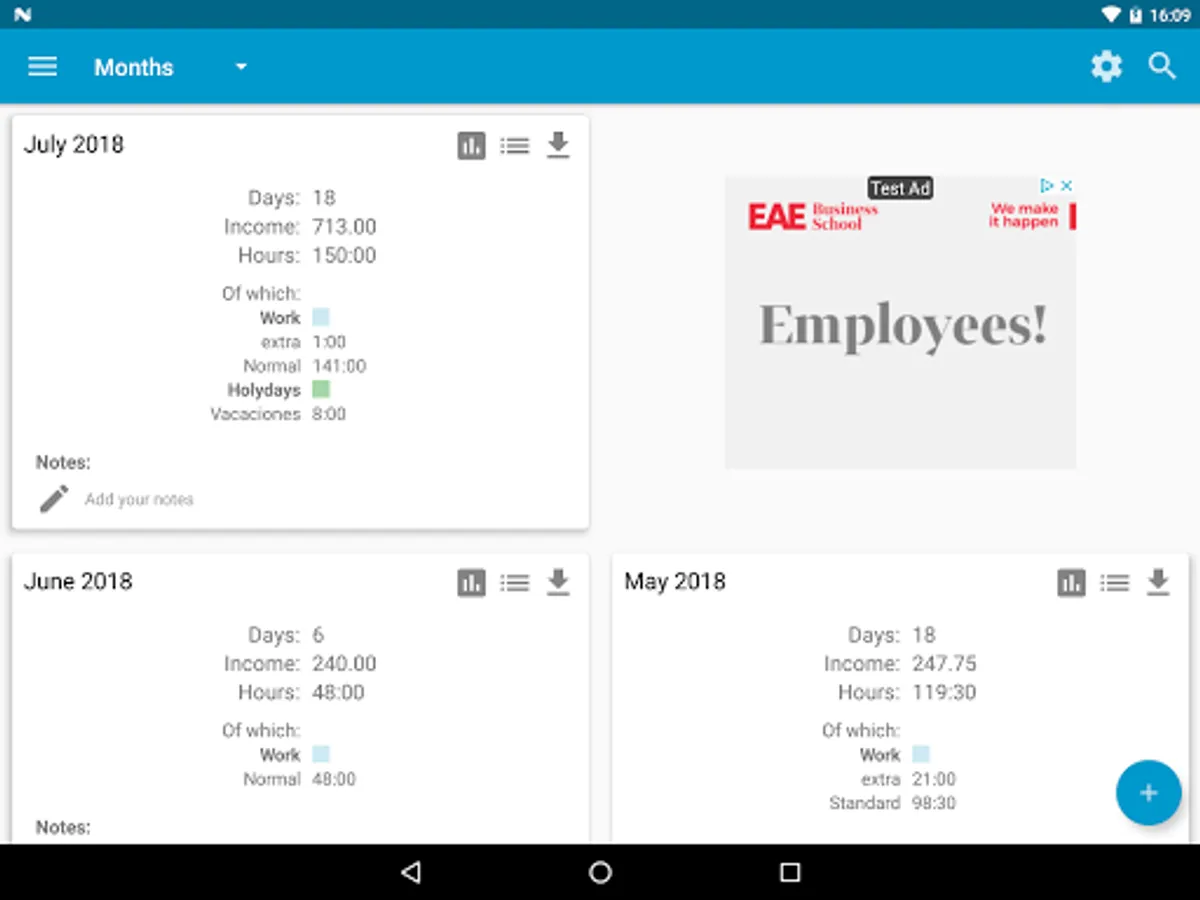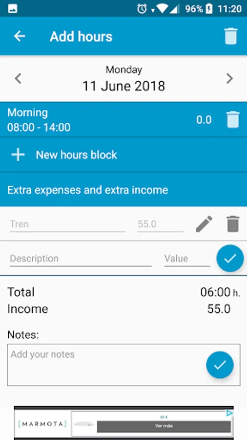 • Add and edit the hours that you have spent each day. You can also use different hour and price types, therefore calculating the money earned in a simple way.