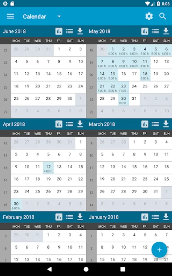 • View yearly, monthly, fortnightly or weekly summaries quickly and even see your worked hours on a calendar.