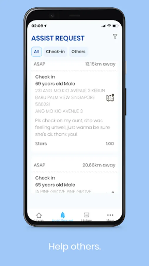 SGAssist is a community app that allows you to find urgent help for your loved-ones. You can also volunteer to help others in your community.