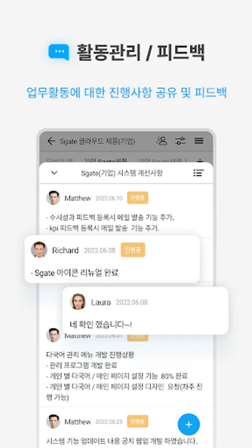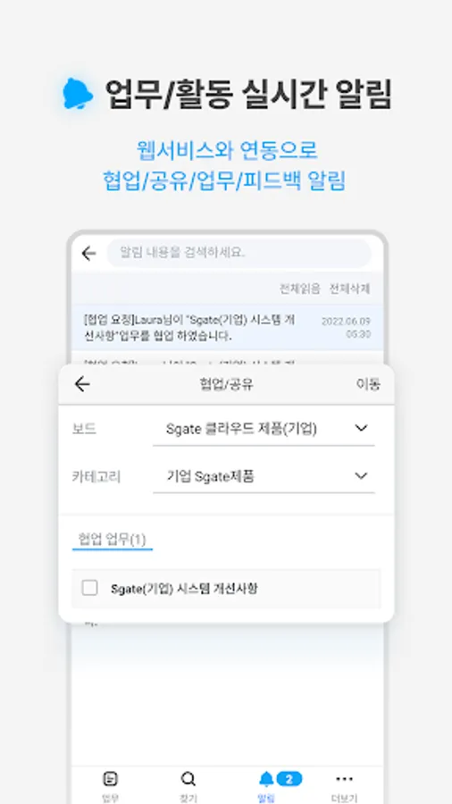 You can receive real-time notifications of registered tasks and activities on mobile and web and participate in tasks.